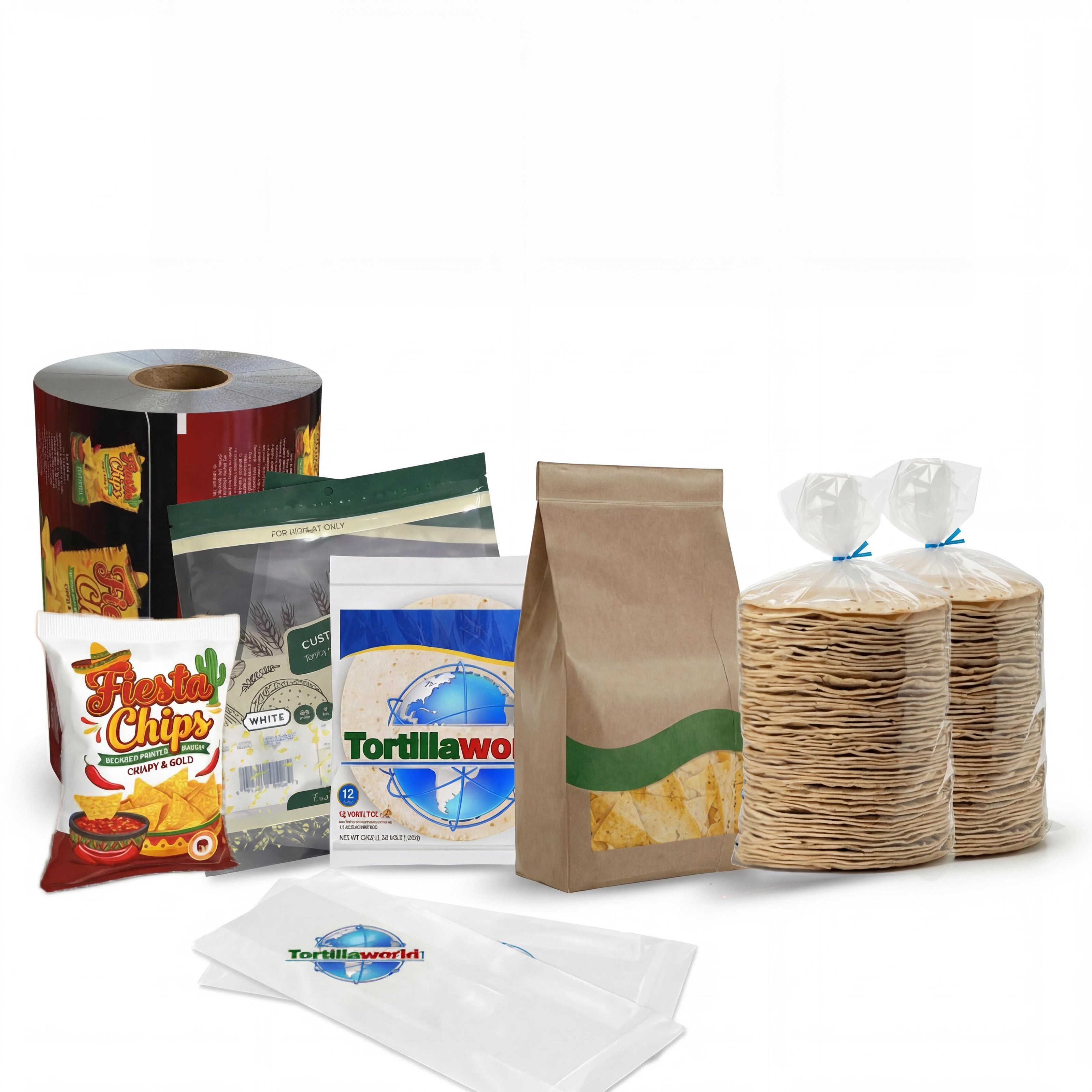 To ShopTortillaworld sells quality made printed poly and polypropylene pre-made bags, paper chip bags and film roll-stock commonly used in the tortilla, tortilla chips, wraps, flat-bread and chapatti Industry with great pricing and performance guarantee. All of our products are premium quality FDA registered, ISO 9001 registered and AIB certified