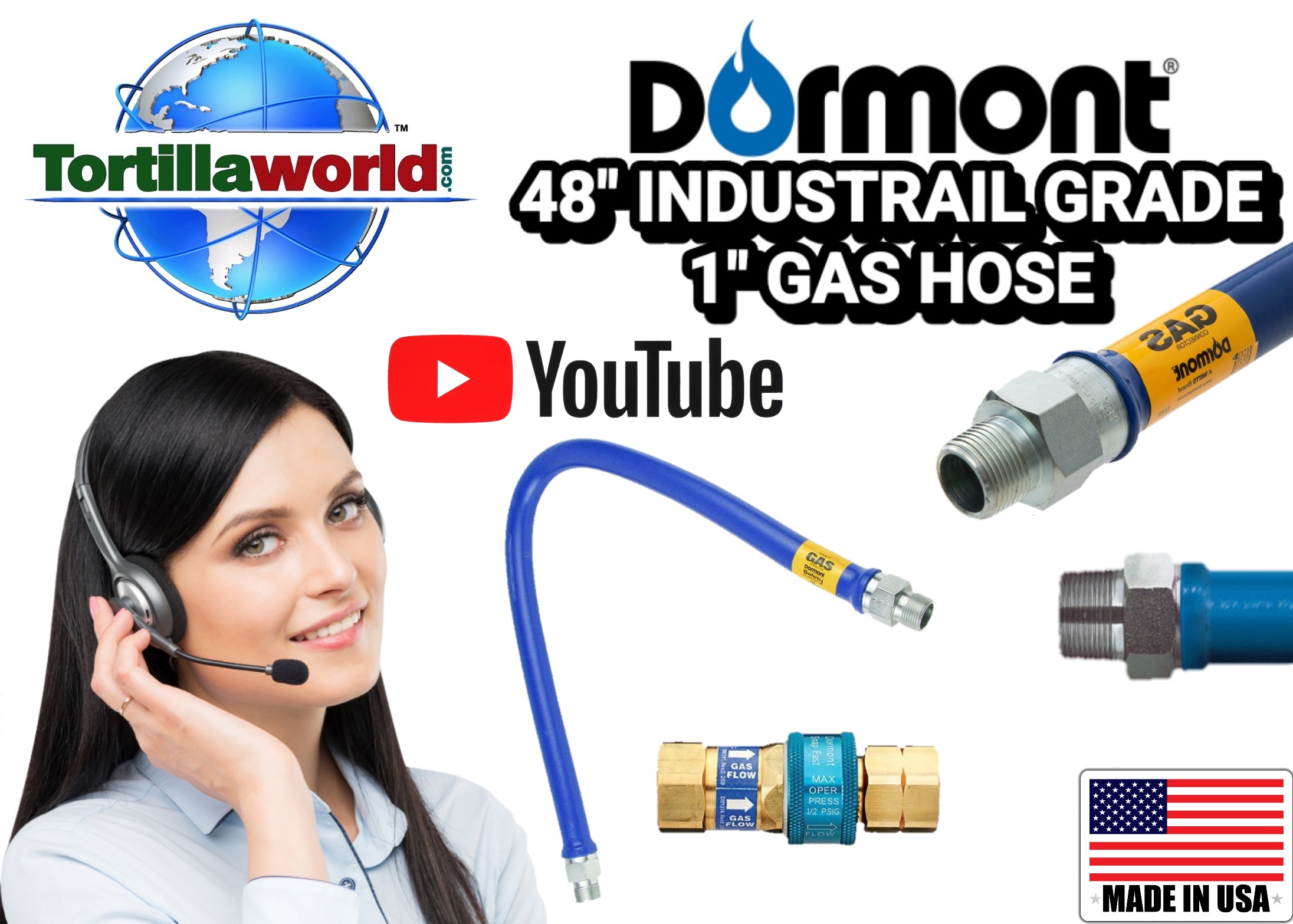This is a commercial grade movable gas hose connector available from 24″ up to 72″ in length, composed of 301 stainless steel corrugated tube covered with a tight weave of stainless steel braid specifically engineered for caster mounted commercial cooking & tortilla Industry equipment like traditional corn cooking tubs,tortilla chips, tostadas and churrito basket fryers from 30 per hour etc.
