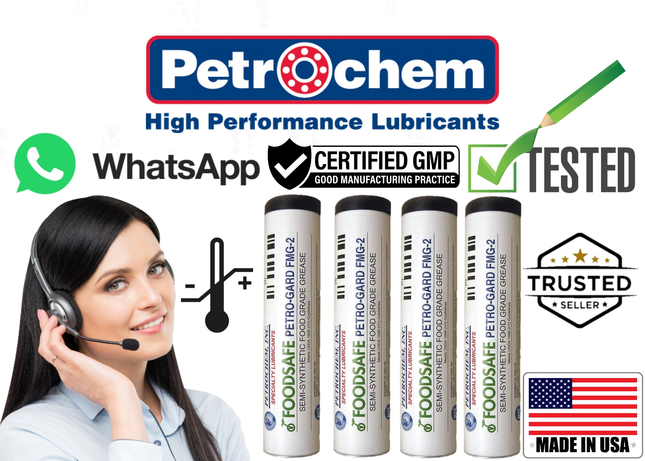 High temperature food grade synthetic grease by Petrochem Industrial lubricants sold by the case of 12/14 oz. tubes