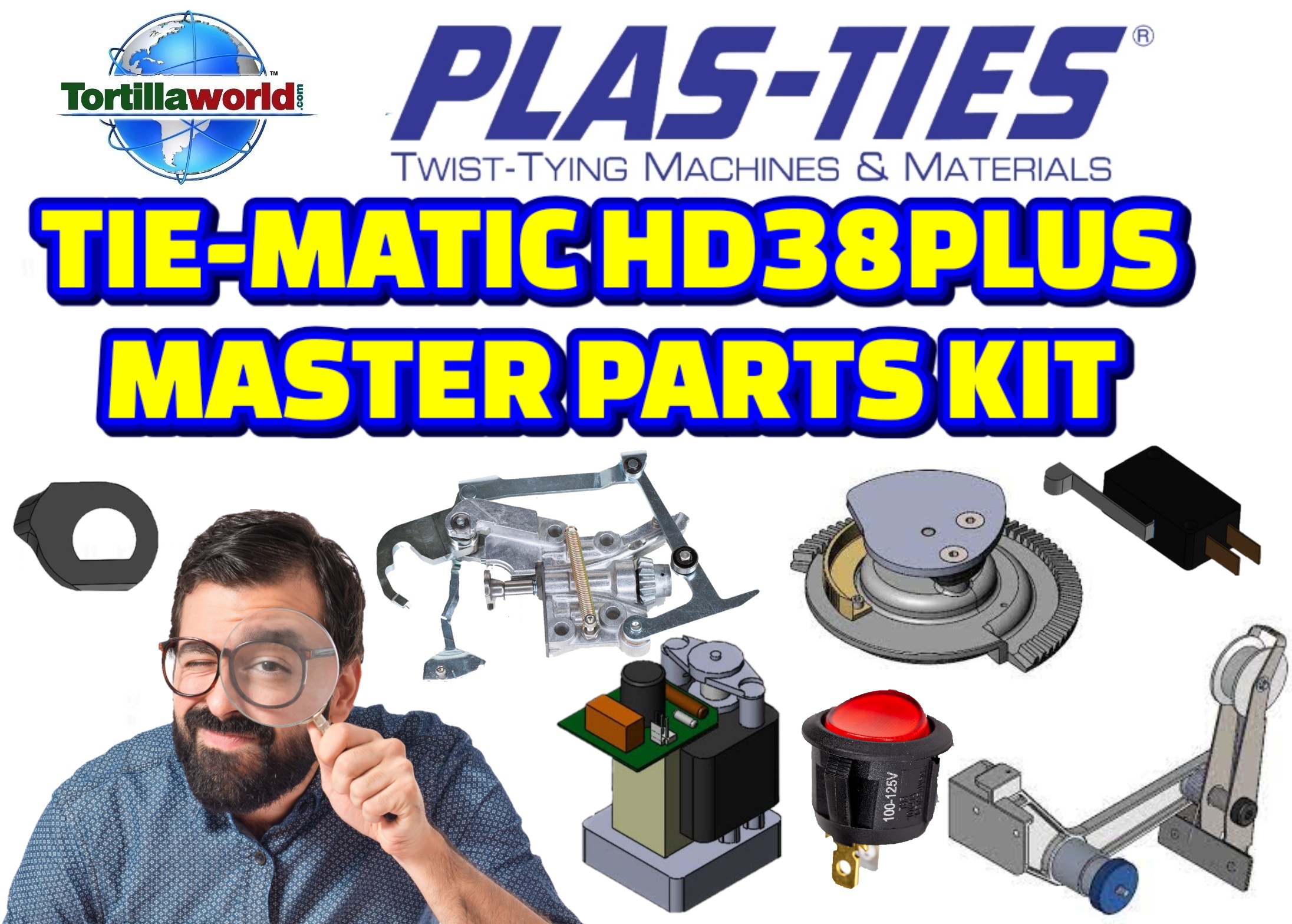 Tortillaworld is an authorized distributor of Plas-Ties who sells the complete line of HD-series twist-tying machines, materials, accessories & parts. This master parts kit hat has everything you need to repair your HD38PLUS twist-tying machine in your shop with little down time versus ordering only the parts you need. Smaller kits available