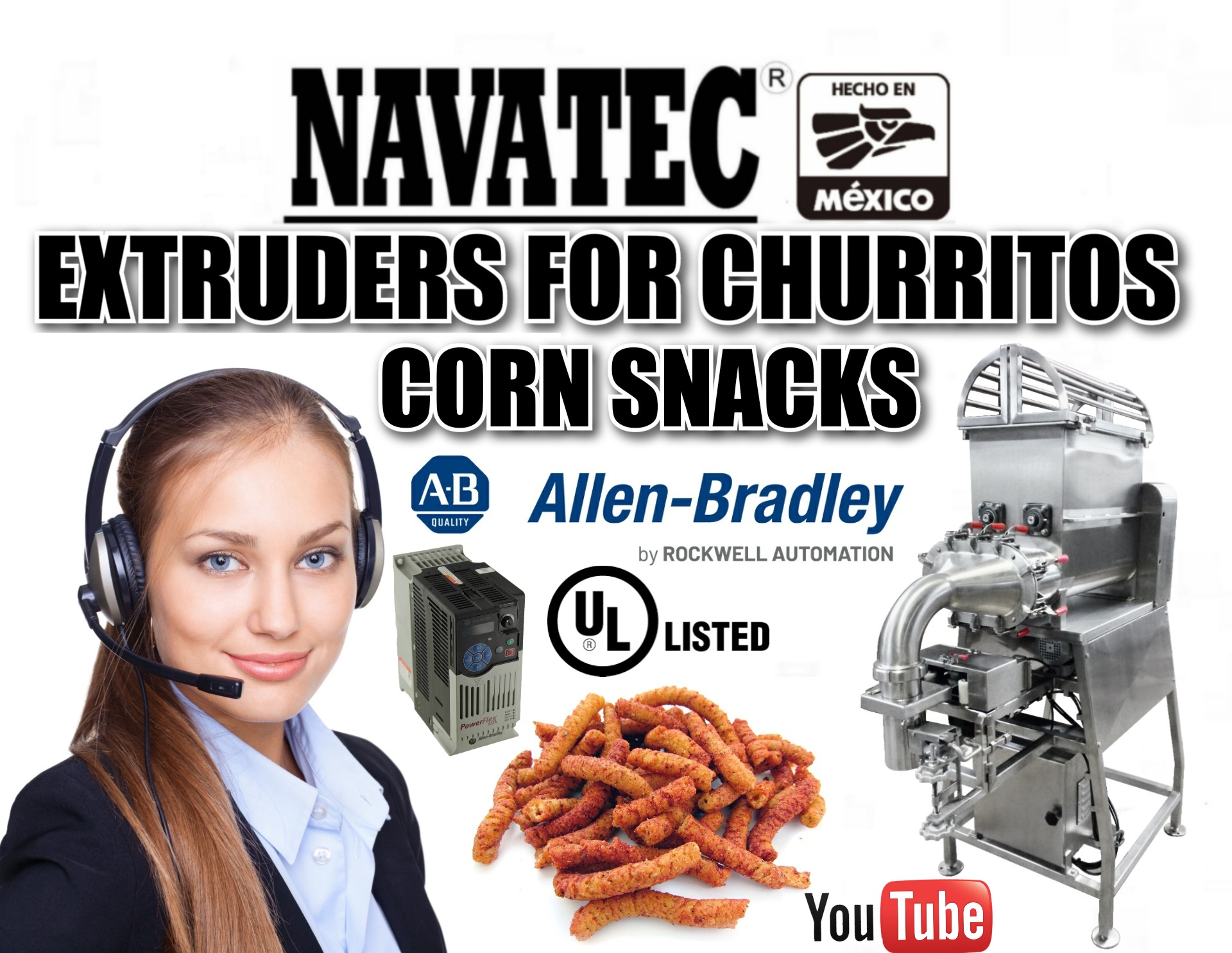 Navatec heavy duty extruder for making churritos (corn snacks) available in different size capacity’s
