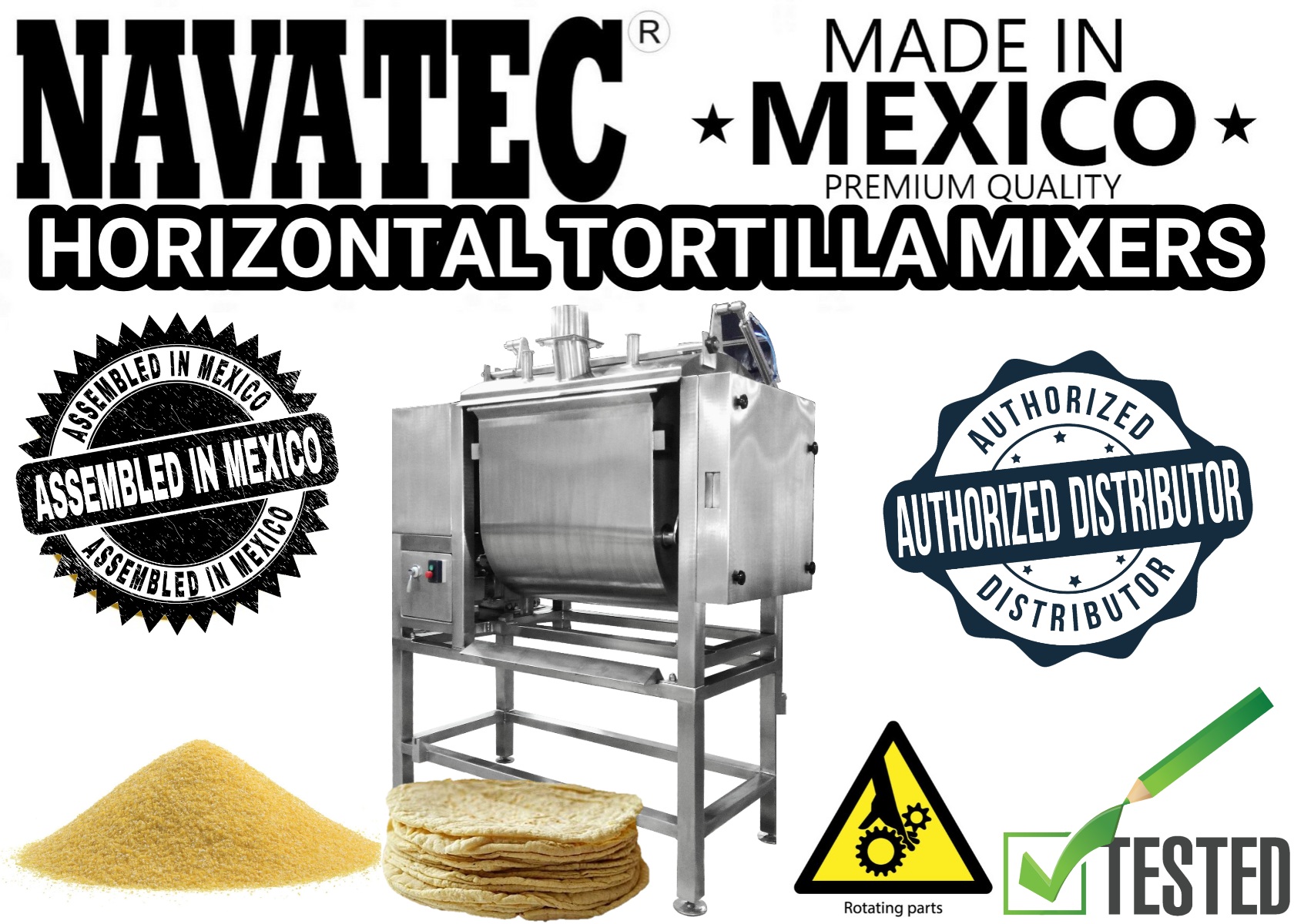 Tortillaworld is the only authorized distributor in the US for Navatec who have been proven durable and dependable by tortilla Industry decision makers and professionals worldwide since 1973. All Navatec equipment sold by Tortillaworld for the US is UL & NSF approved