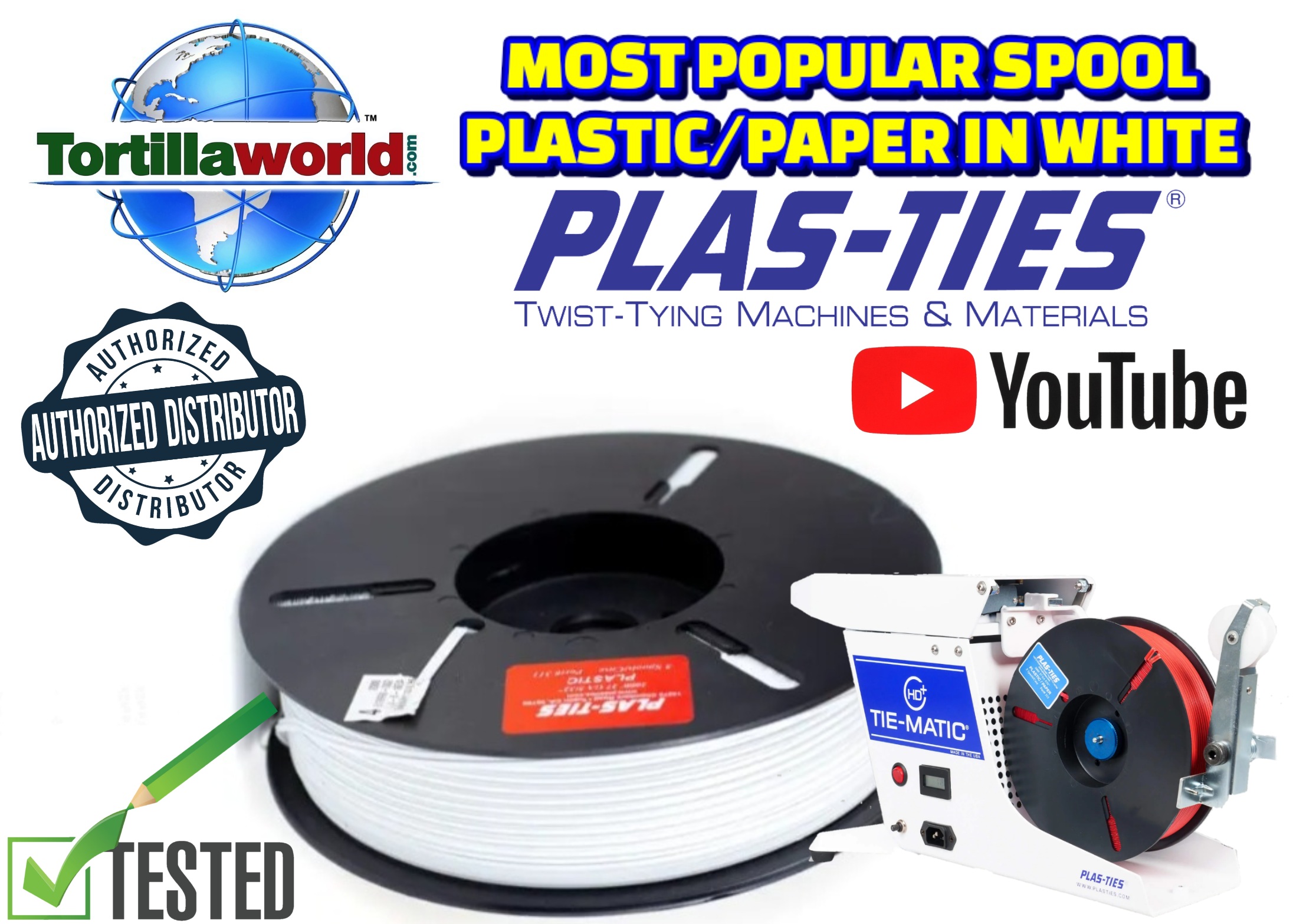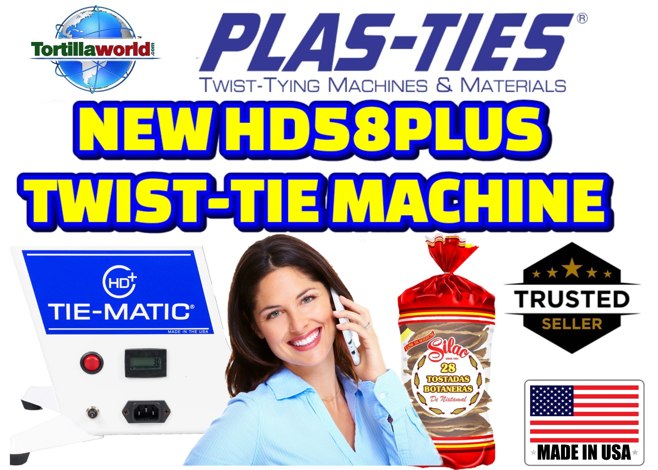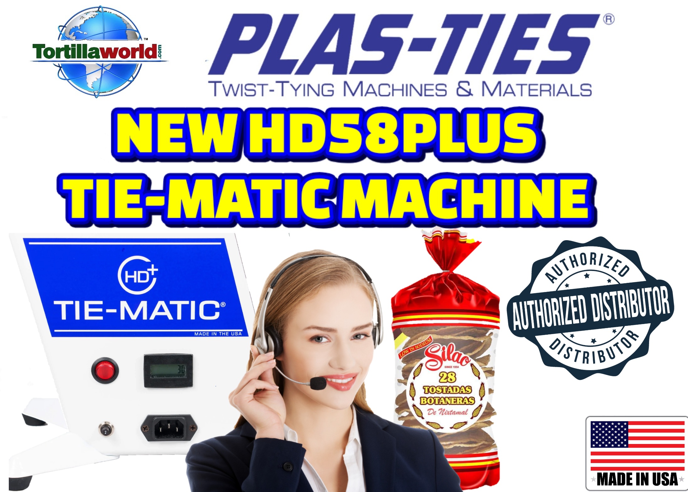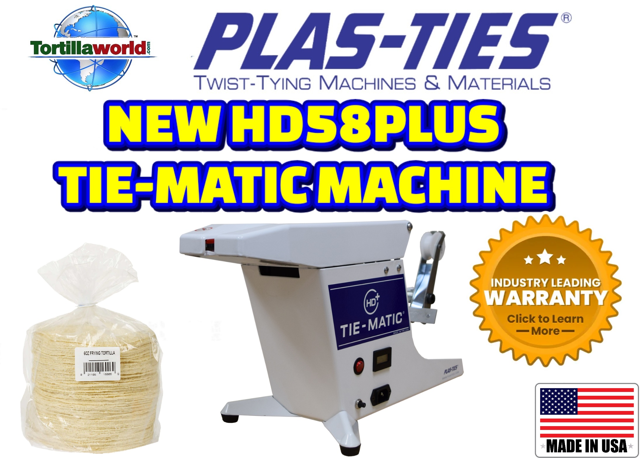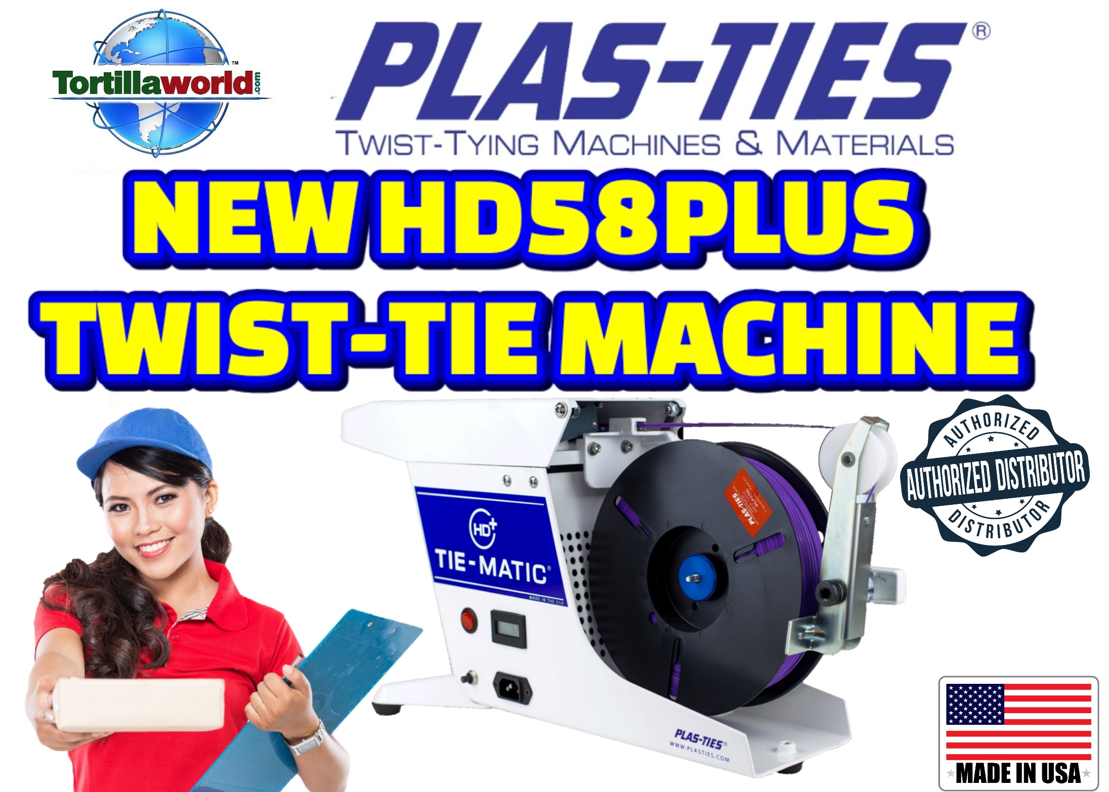 Tortillaworld is an authorized distributor of Plas-Ties who sells the complete line of HD-series twist-tying machines, materials, accessories & parts. The HD58PLUS Tie-Matic has been proven to work in the tortilla Industry for over 30 years. Close your bag & label your product in just 1 second. Its fast, durable & reliable