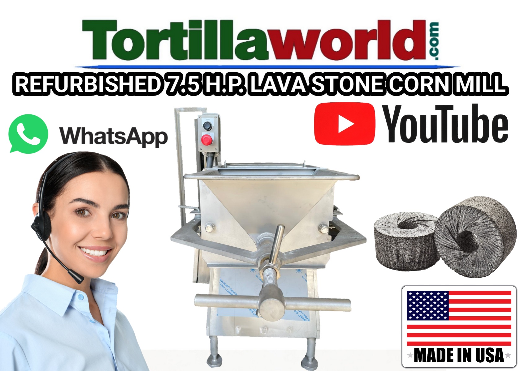 7½ HP. refurbished American made stainless steel corn grinder Includes 1 new set of 8″ lava stones. Note: magnetic starter available for this corn grinder sold separately