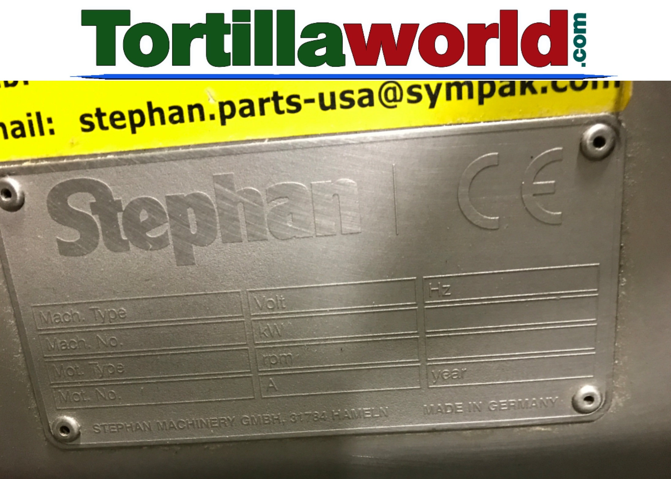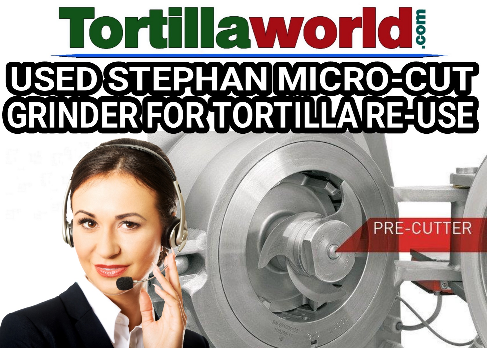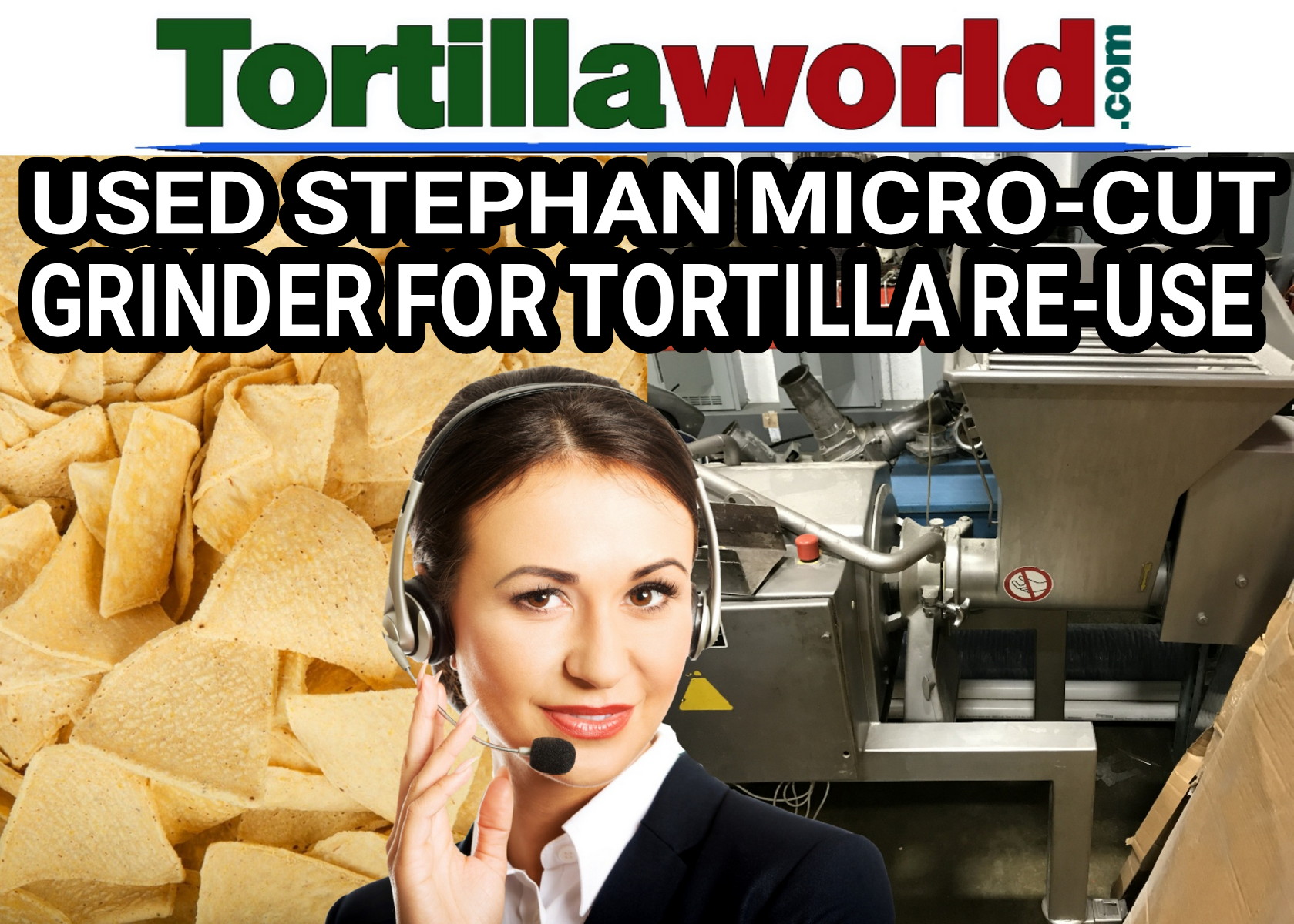Used Stephan micro-cut tortilla grinder used to re-use good tortillas back in your mixer with fresh masa dough & make the tortillas over again saving you money instead of throwing away good tortillas that did not come out completely round or some other defect. There are 2 steps to get a smooth and fine product. Put the defective tortillas directly into the grinders hopper and select the feeding speed then press the start. That’s all